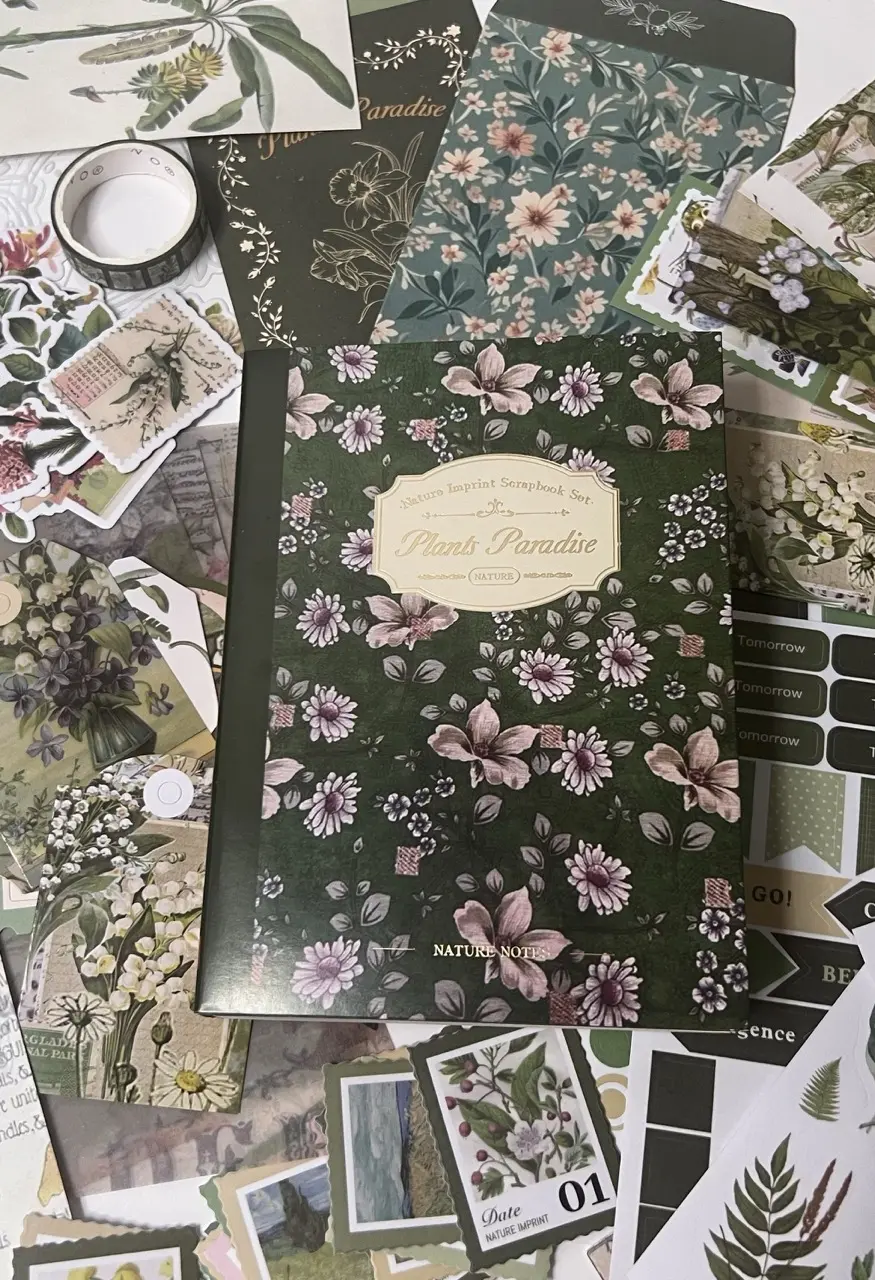 Kauniita skräppäyspaketteja, tarroja ja muistikirjoja käsillä tekemiseen.